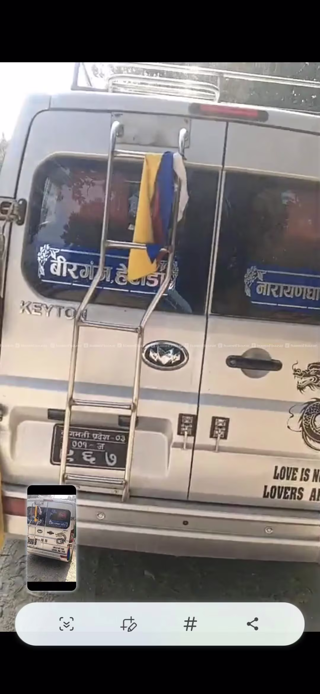 सबै पेपर बुल बुक,परमिट,जाँच पास, बिमा, संघ सबै क्लियर छ । बिरगंज देखि चितवन धादिङ फर्पिङ हुदै काठमाडौ सम्मको रुट १४ सिटर ev micro kiy tone van बिक्रिमा